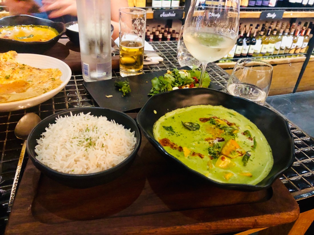 From outside, The Wine Rack looks a bit like a chain – but inside it is modern, laid back and chic with a large featured bar. The menu is a bit confusing as it is so big with a large range of flavours, but I’d recommend the massive Karari Roti to share, the seared tuna, the sun dried tomatoes kulcha and the green pineapple curry. They even have one beef dish on the menu here – though written with *** to not offend anyone. Remember that the cow is holy in India, and beef is only eaten in the Kerala region in the South of the country.