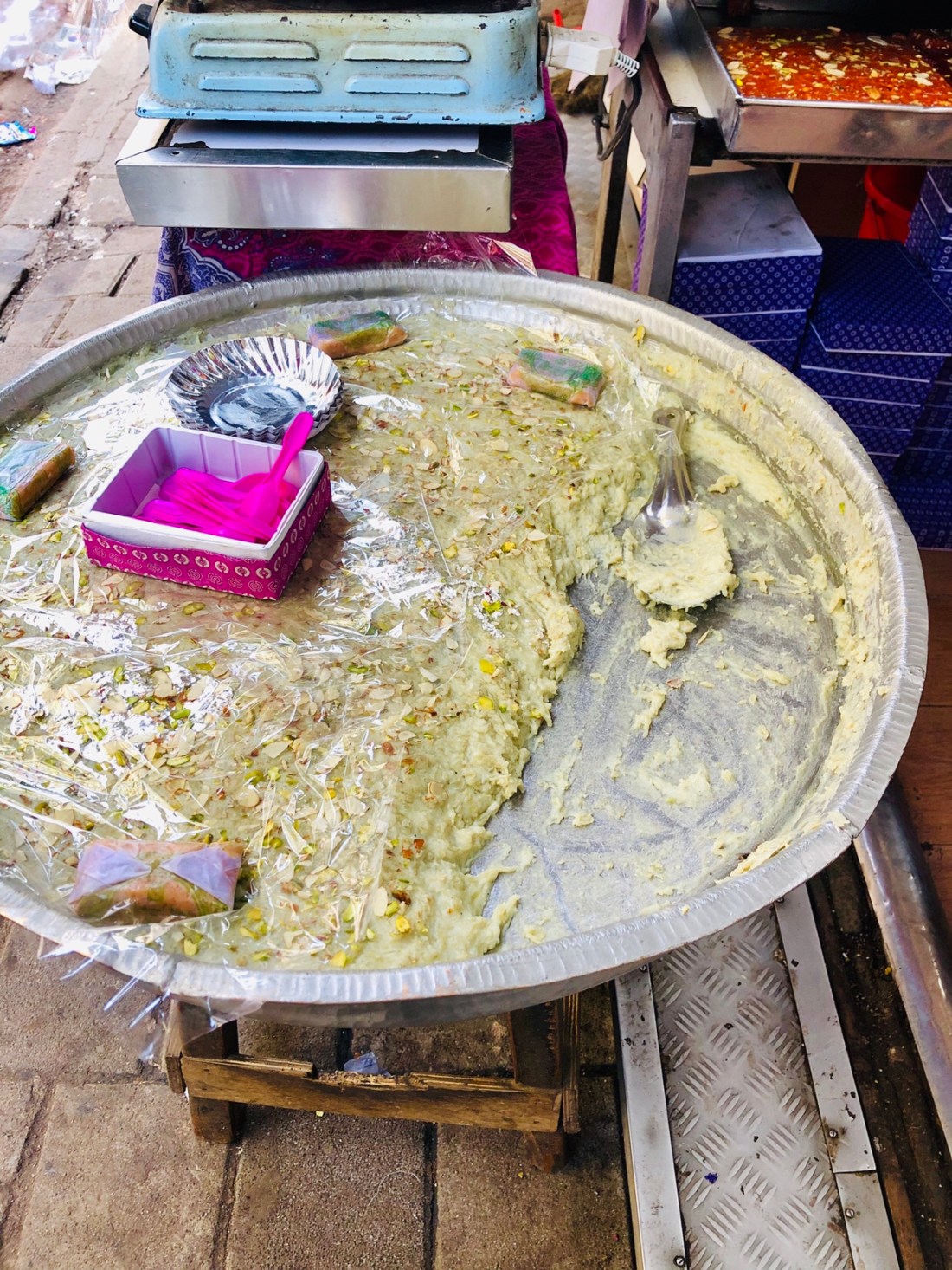 Find the shop that cooks made to order roti on a coal fire in a barrel – wrap it in a newspaper to go, then get a colourful chicken shawarma in a naan bread from the little street wagon before you venture towards the many sweet shops and bakeries.